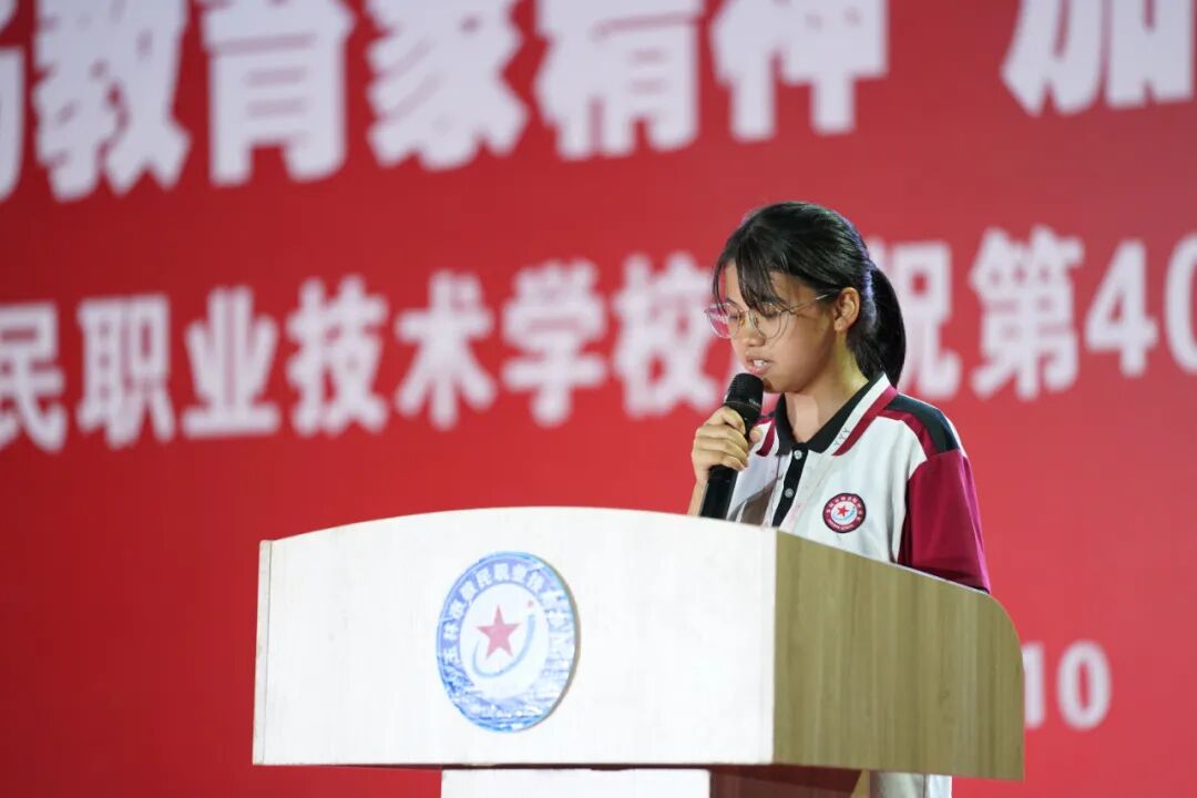 学生代表2314班余芸芸发言并带领全体学生进行了宣誓仪式。他们用坚定的声音表达了对未来的憧憬和信心以及对国家、学校和家庭的责任感与使命感。这一刻的誓言将化作他们前进的动力和信念的支撑。