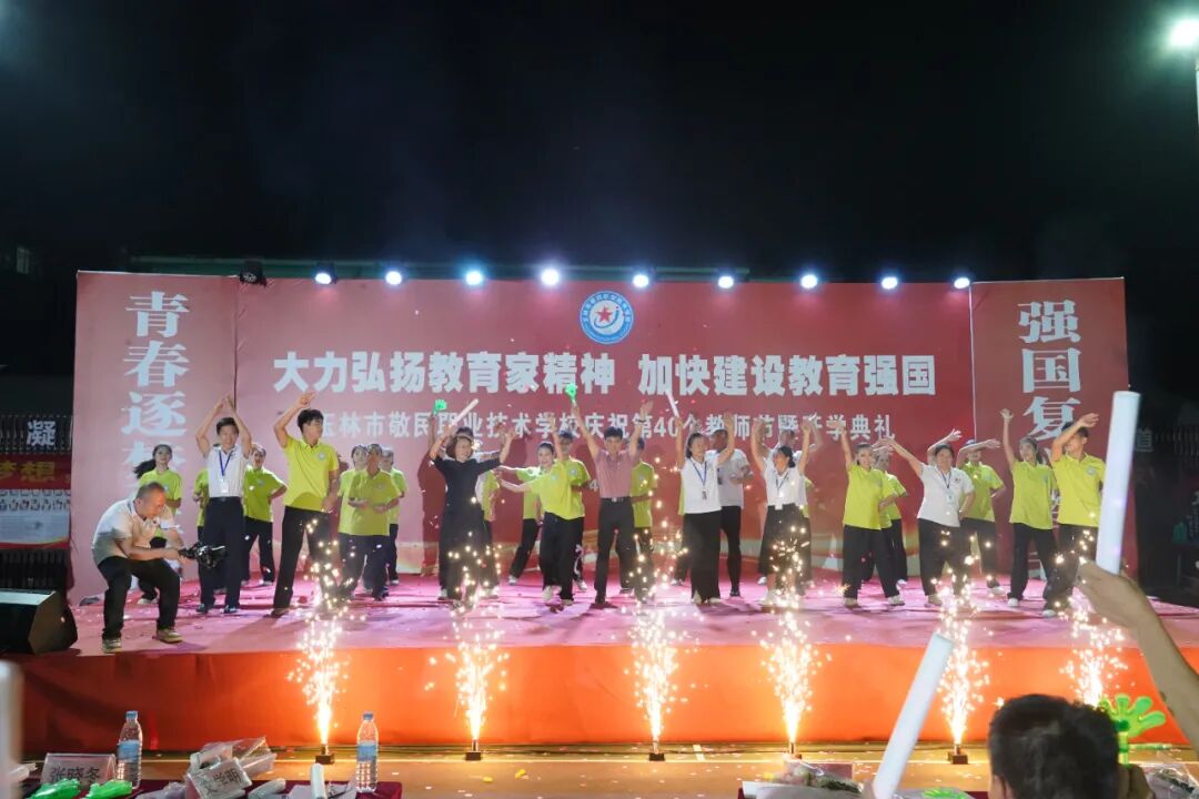随着夜幕降临玉林市敬民职业技术学校2024年秋季期开学典礼暨教师节庆祝活动圆满落下帷幕。但青春逐梦的征程才刚刚开始,让我们携手并进在新学年的道路上不断前行为实现强国复兴的伟大梦想贡献自己的力量!