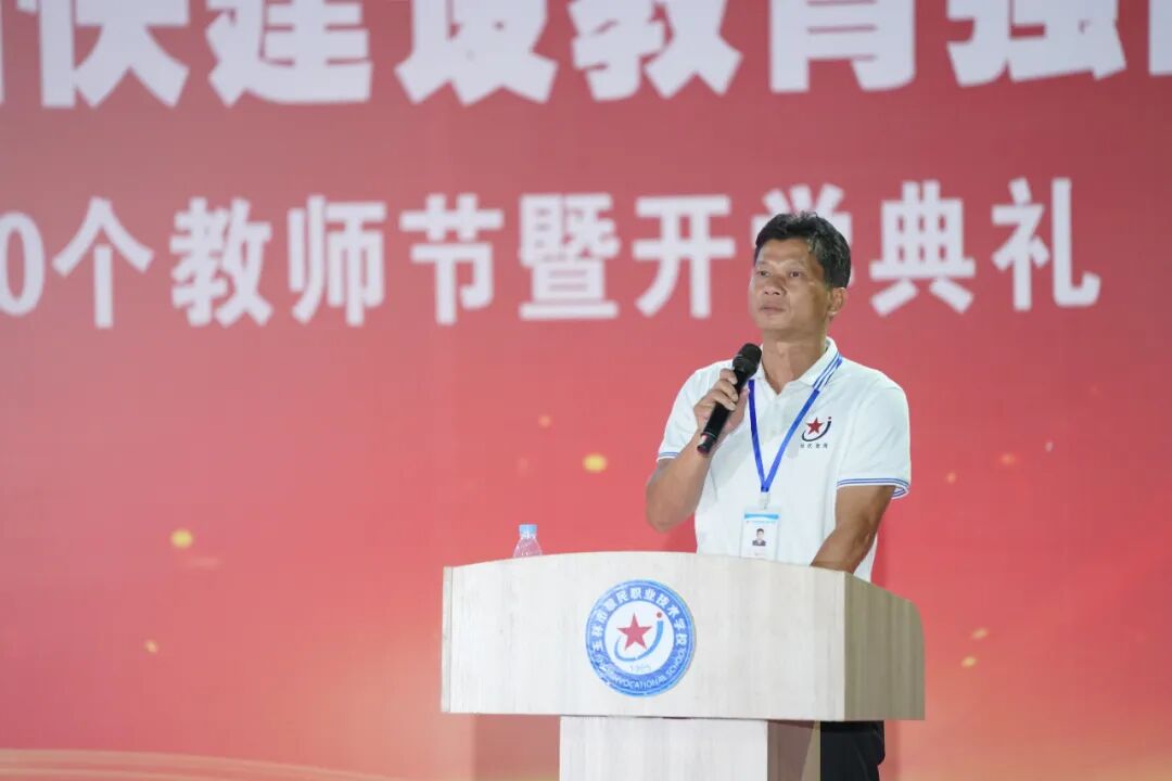在这个充满希望的季节里,玉林市敬民职业技术学校迎来了充满希望与挑战的新学期,同时,也迎来了第40个教师节——一个属于全体教师、一个关于传承与奉献的特别日子。2024年9月10日,玉林市敬民职业技术学校2024年秋季期开学典礼暨教师节活动盛大举行,玉林敬民集团董事长文学明、玉林市敬民职业技术学校校长刘柳、常务副校长覃季秋等行政领导、全校师生参加了此次活动。活动由团委彭鸿燕书记、教官部覃隆鹏队长主持。全校师生以饱满的热情和昂扬的斗志,共同开启了新学期的篇章,庆祝这个属于知识与奉献的特别日子。