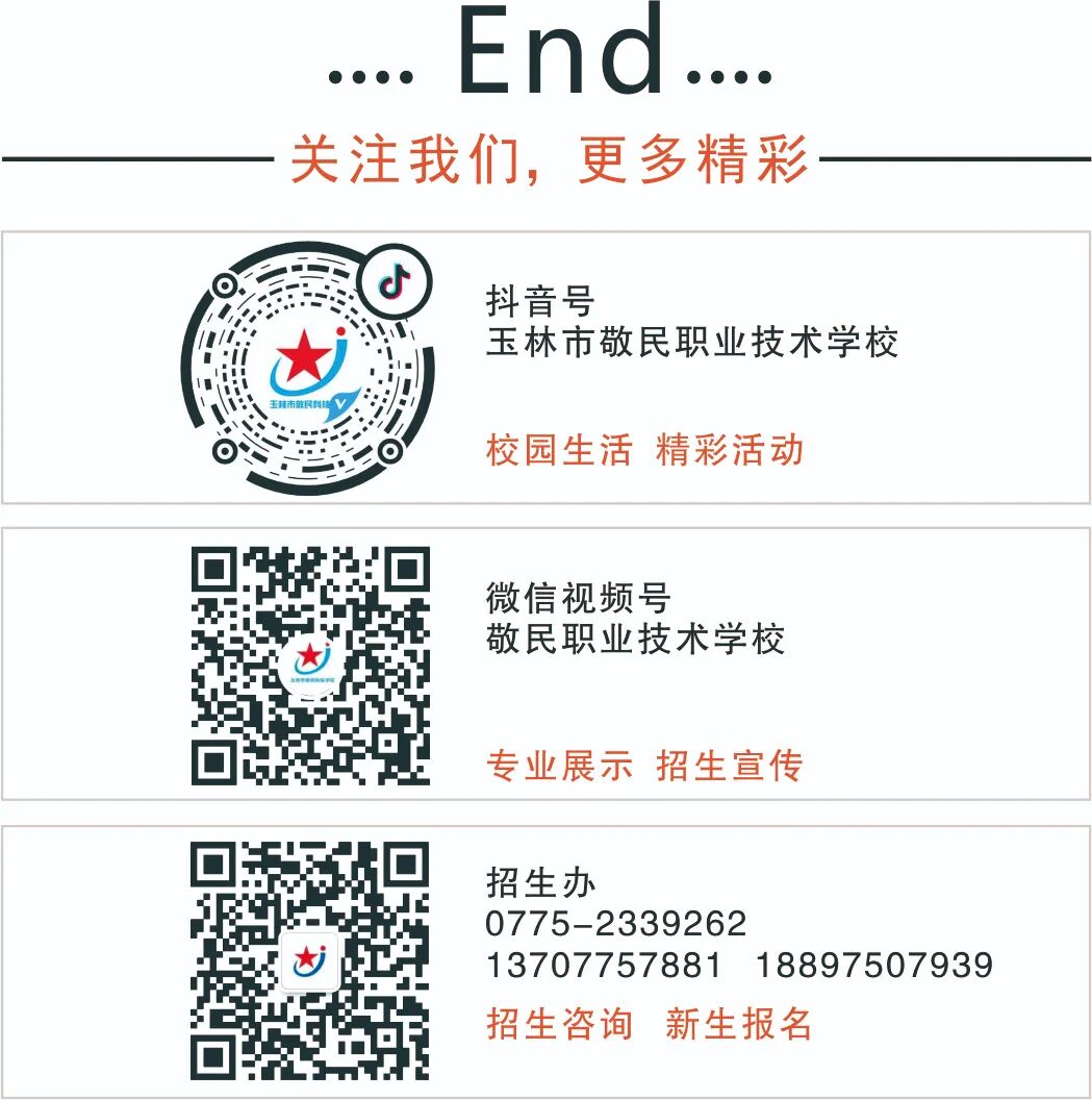 军训虽已结束,但军训留给每一位新生的宝贵财富将伴随他们走过未来的学习生涯。在玉林市敬民职业技术学校这片充满希望的土地上,新生们用汗水与努力书写了属于自己的军训篇章。愿每一位新生都能怀揣梦想,勇往直前,书写属于自己的精彩篇章!
